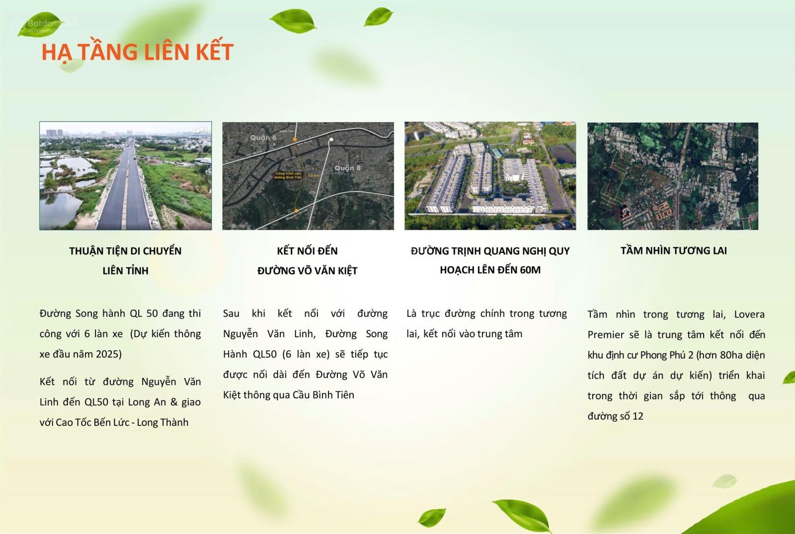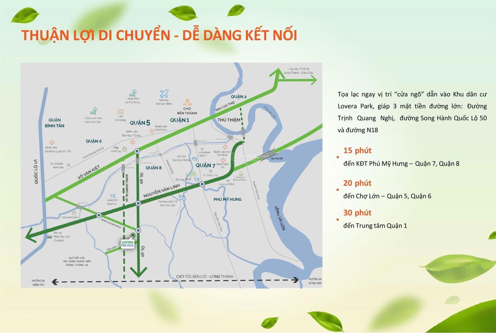 - Tiếp giáp với đường Song Hành Quốc Lộ 50, thuận tiện đi về quận 1, quận 3, quận 5.