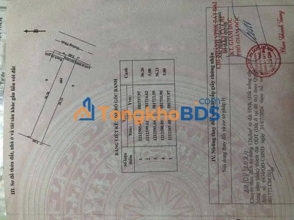 - Bố trí: Ngang 5m, dài 36m, có 120m2 thổ cư, đất vuông vức, dễ thiết kế xây dựng nhà ở hoặc nhà kết hợp kinh doanh.