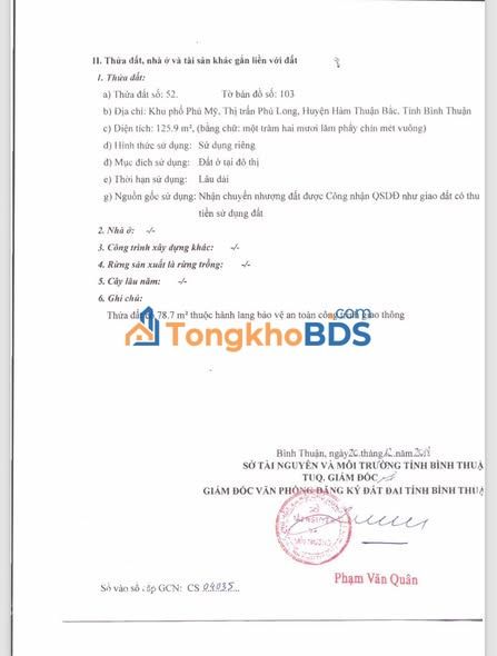 - Đặc điểm:Đất nền mặt đường nhựa, khu dân cư hiện hữu, không khí mát mẻ, thích hợp xây nhà ở kết hợp homestay, tiềm năng tăng giá theo phát triển du lịch Phan Thiết.